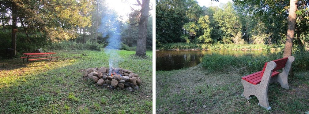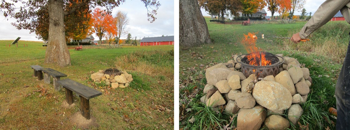We provide a campfire out-front of the B&B near the pond. We have a ring of stones that a metal caged campfire fits into- that can be lit for our guests. There are three rustic benches for sitting near the campfire. Also provided are retractable campfire sticks, marshmallows, graham crackers and chocolate bars to make smores.