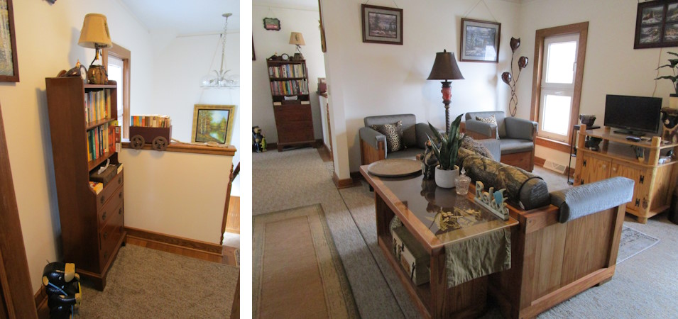 When you stay with us, in this cozy place…we will all be sharing the same house. There will be many chances to visit as we go about doing the things we enjoy…each with our own separate bedroom living quarters. Guests have their own private entrance…access to come and go 24 hours a day. Upstairs right outside the two guests’ rooms is the Second Floor Living Room, a Common Area, with flatscreen T.V. There are Magazines in Cubbyholes, books in a Staircase Wagon, and more books in the bookcase, but unlike the out-door library we request these special in-door-books remain here with us. There are also DVD Movies and games stored in bookshelf drawers. The Living Room Lounge is stocked with Beverages, Candies, Popcorn Machine, popcorn and appliances. We are often in this area restocking supplies, removing dishes that need washing from a tray provided, and we have a bell that can be rung when we are home and inside, that we can hear, so that we come if supplies are needed.