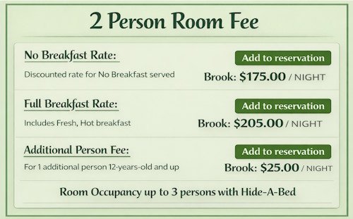 Brook (River Boat / Bird Theme) Large Master Bedroom is 255 square feet with queen sized boat bed with all you could ask for in a river craft. The room also adjoins its large private bathroom with 2 person soaking tub and full sized shower. A fire & ice fireplace (can be run with the heat off), a flickering river lighthouse, sofa hide-a-bed- if you are bringing your child, youth 12 years or older. Or just have a couch for your enjoyment.